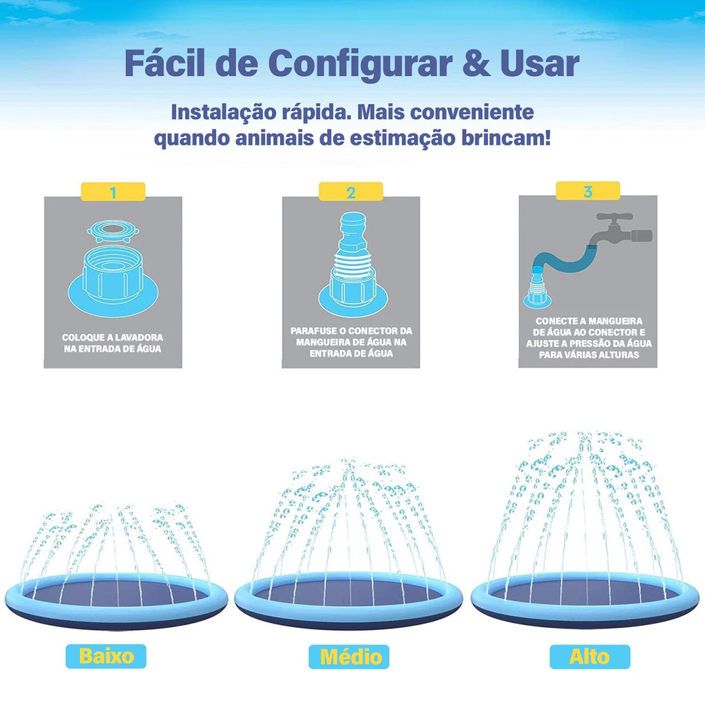 FESTA NA ÁGUA NO QUINTAL: realizar uma festa na água no divertido brinquedo de aspersão para crianças/animais de estimação é proporcionar espaço suficiente para brincar e a diversão certa com suas famílias. Grande splash pad adequado para atividades ao ar livre, quintais, praias e gramados.